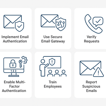 - Independently verifying requests through channels other than email, such as phone calls, video chats, or internal messaging platforms, allows you to verify financial or data-related requests every time.